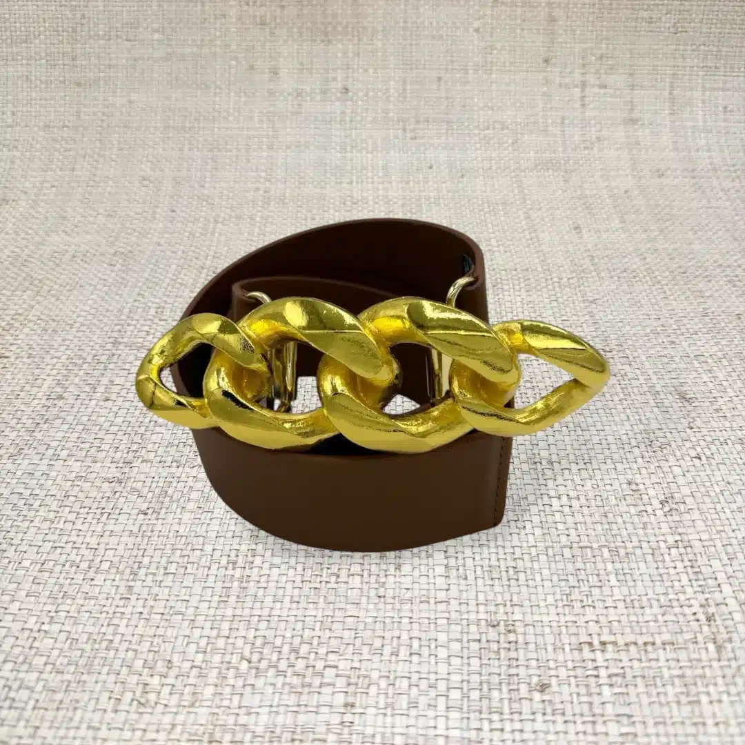 Home / Shop All / Chain Link Gold Belt Buckle Chain Link Gold Belt Buckle GARLAND$85.00 Chain Link Gold Belt Buckle quantity Add to cart DescriptionThis buckle is an edgy classic – the gold chain link! It measures 5.25″ x 2.5″ and is interchangeable with all of our original stretch and stretch leather belt bands – BANDS ARE SOLD SEPARATELY. You May Also Like... Bow Belt Buckle GoldGARLAND $95.00 View Product Koi Belt Buckle GoldGARLAND $95.00 View Product Foo Dog Belt Buckle GoldGARLAND $95.00 View Product