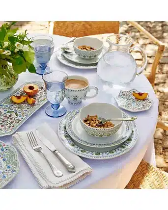 There’s a sense of romance and whimsy to this serving bowl that’s trimmed with a single garland of wildflowers on the outside and festooned with our lush, folkloric floral motif on the inside. In fresh hues of greens, blues and pinks inspired by the Spanish countryside, this serving piece mixes and matches endlessly with other patterns and is an enchanting addition to any table.