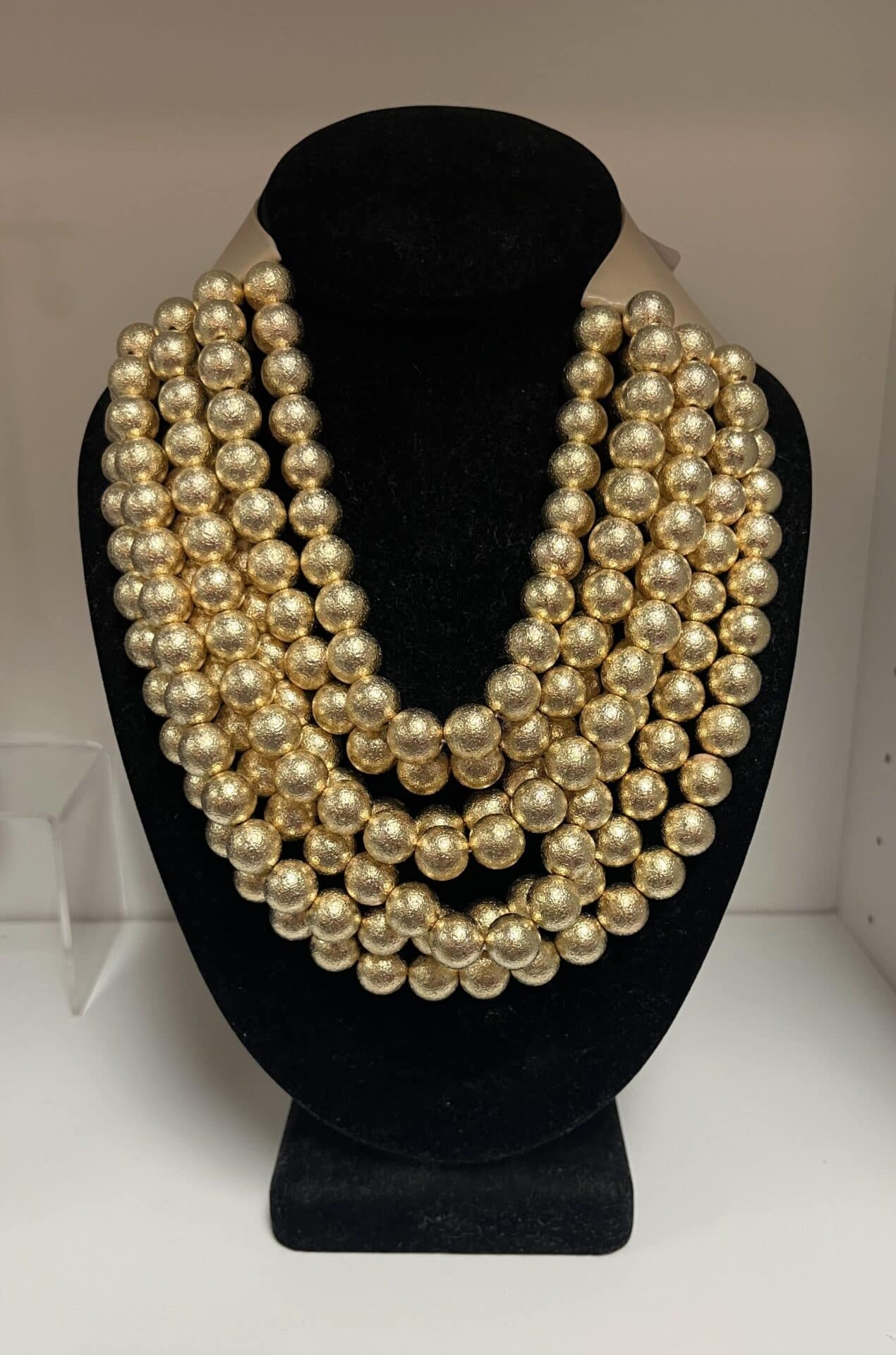 Home / Shop All / Multi Strand Magnetic Gold Necklace Multi Strand Magnetic Gold Necklace $85.00 Multi Strand Magnetic Gold Necklace quantity Add to cart DescriptionMake a confident statement with this chunky multi-strand beaded necklace, crafted from high-shine acrylic beads and designed with a secure magnetic clasp for easy wear. You May Also Like... Carole Shiber Designs Napkin Ivory $10.50 View Product Margorelle Optic Vase View Product B’s Knees Big Sky Flower Diffuser $48.00 View Product Vida Nube Ice Bucket $75.00 View Product